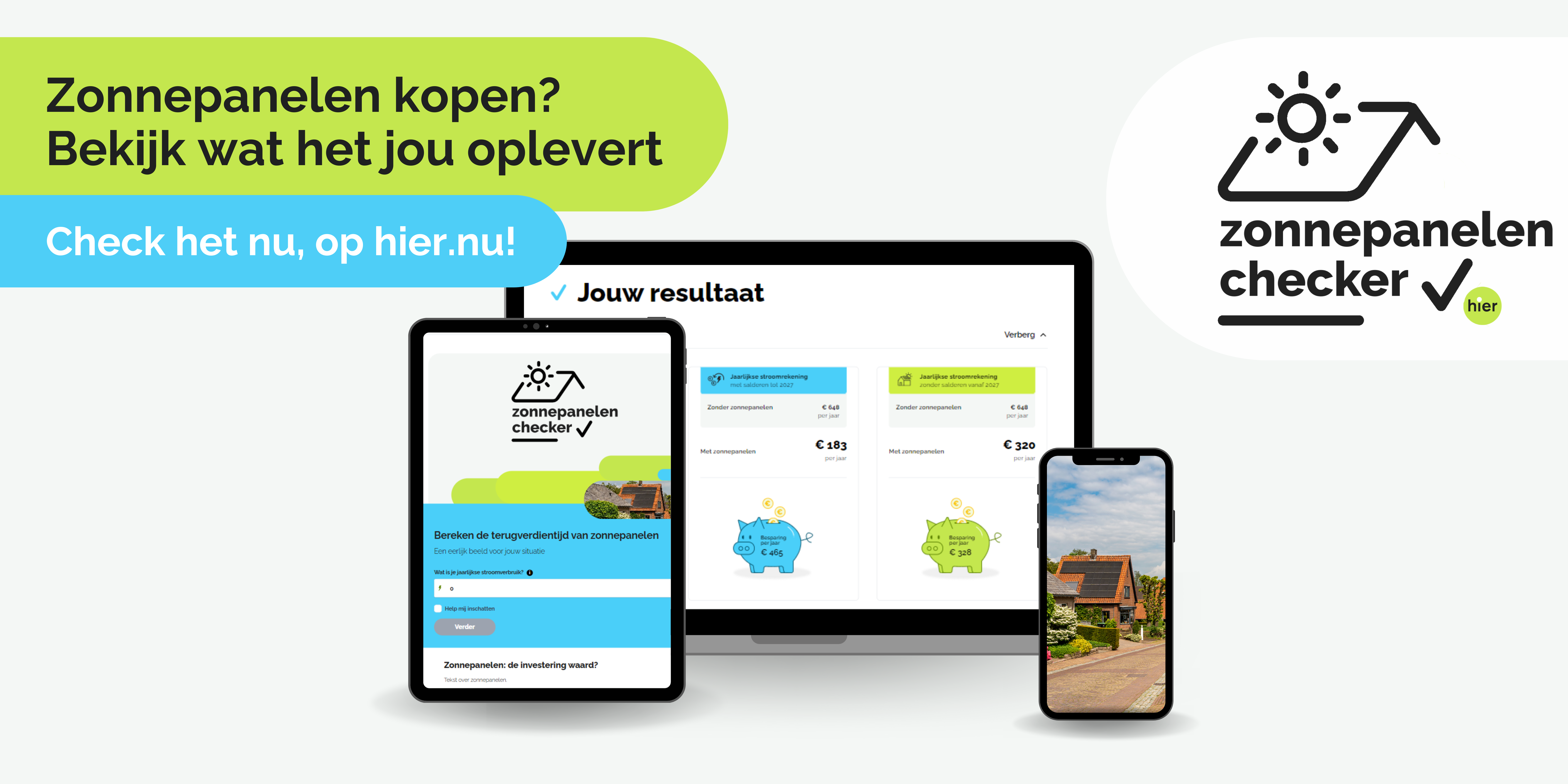 De salderingsregeling wordt afgeschaft, je betaalt terugleverkosten en er is op steeds meer plekken sprake van krapte op het stroomnet. Met de onafhankelijke Zonnepanelen checker van Klimaatstichting HIER krijg je een eerlijk en objectief beeld van de terugverdientijd en besparing. Afgestemd op jouw persoonlijke situatie en rekening houdend met de actualiteit. Ook krijg je inzicht in hoe je de terugverdientijd kunt verkorten en totale besparing kunt verhogen door je zonnestroom zoveel mogelijk direct te verbruiken.